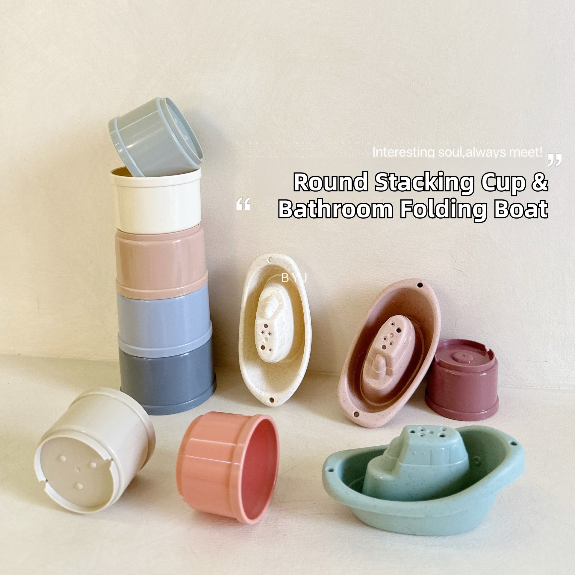 11PCS Sailboat Stacking Cups Bath & Beach Toy Set - Creative Stacking Game for Toddlers, Water Play Educational Building Blocks