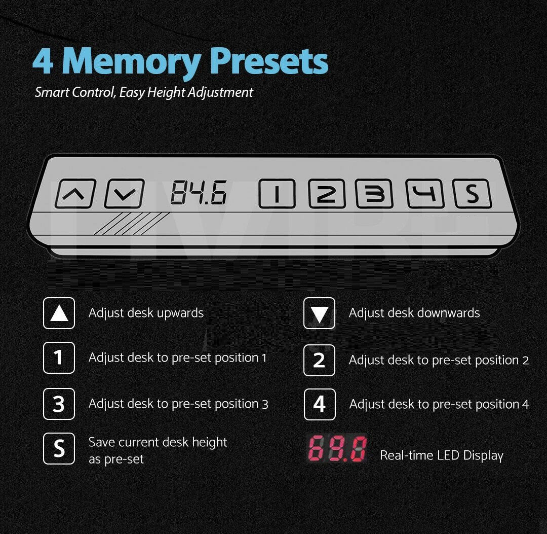 The innovative Amazingooh Motorised Height Adjustable Desk Frame has first and foremost been designed to provide comfort and health benefits. You can set up to 4 pre-set heights via the control panel, or adjust to any specific height, right up to 125cm (Dual motor). Customise with your own desktop, the frame has an adjustable width suitable for desktops between 110-190cm.
