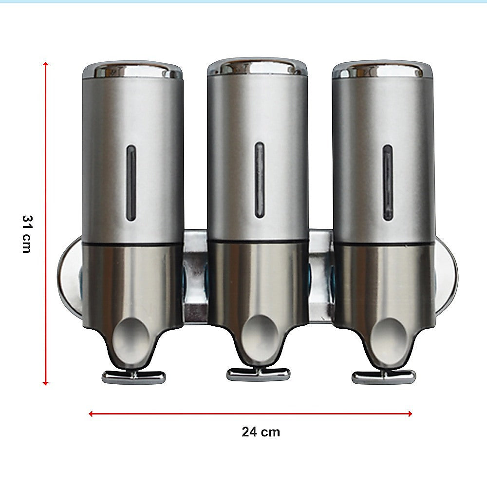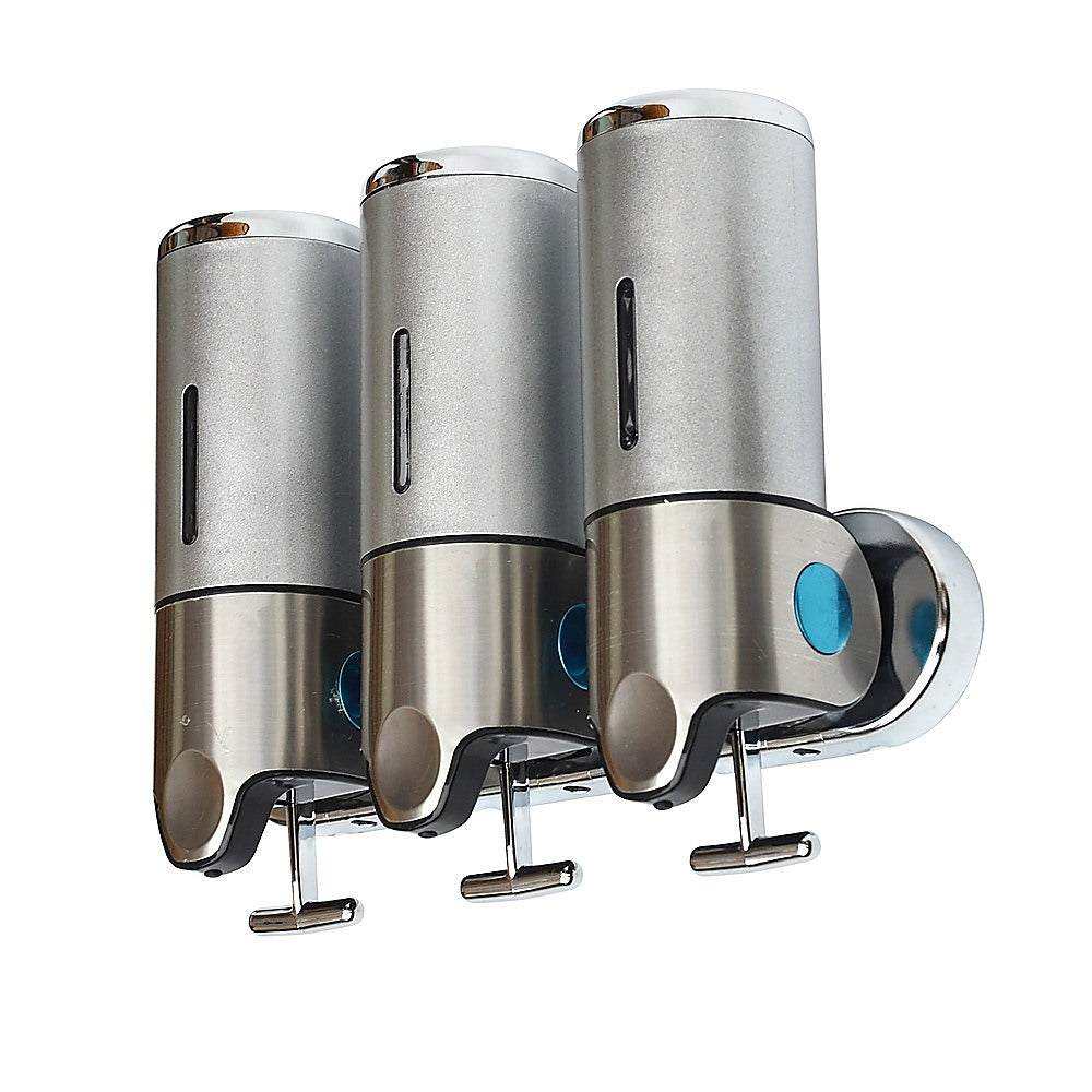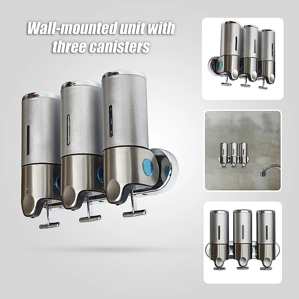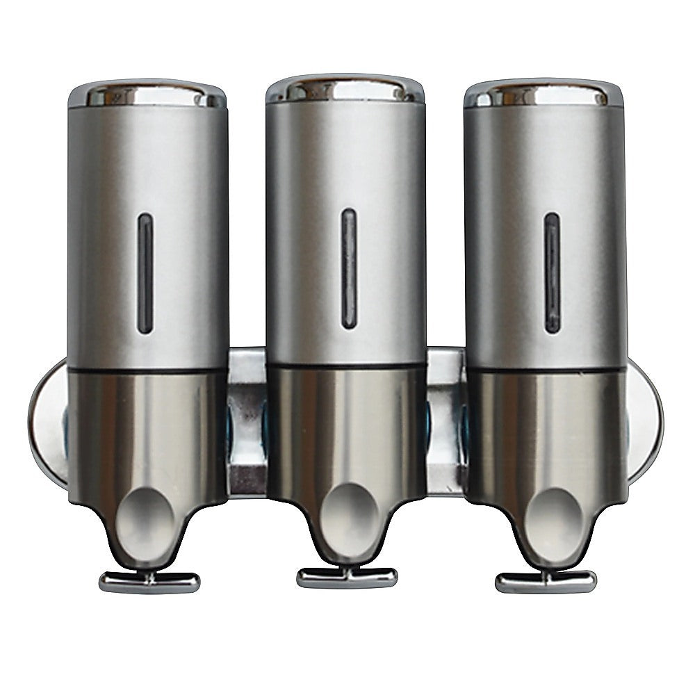 With its sleek, ergonomic design, this shower soap dispenser looks great in your shower. Install another one near your sink and keep your benchtops free from clutter. With three separate canisters attached to a single bar, the dispenser can store three different kinds of soaps, shampoos, lotions, or gels.