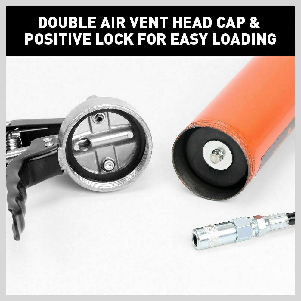 18'' Manual Pistol Grip Grease Gun Flow Pressure 4500PSI Flexi Hose & Coupler
