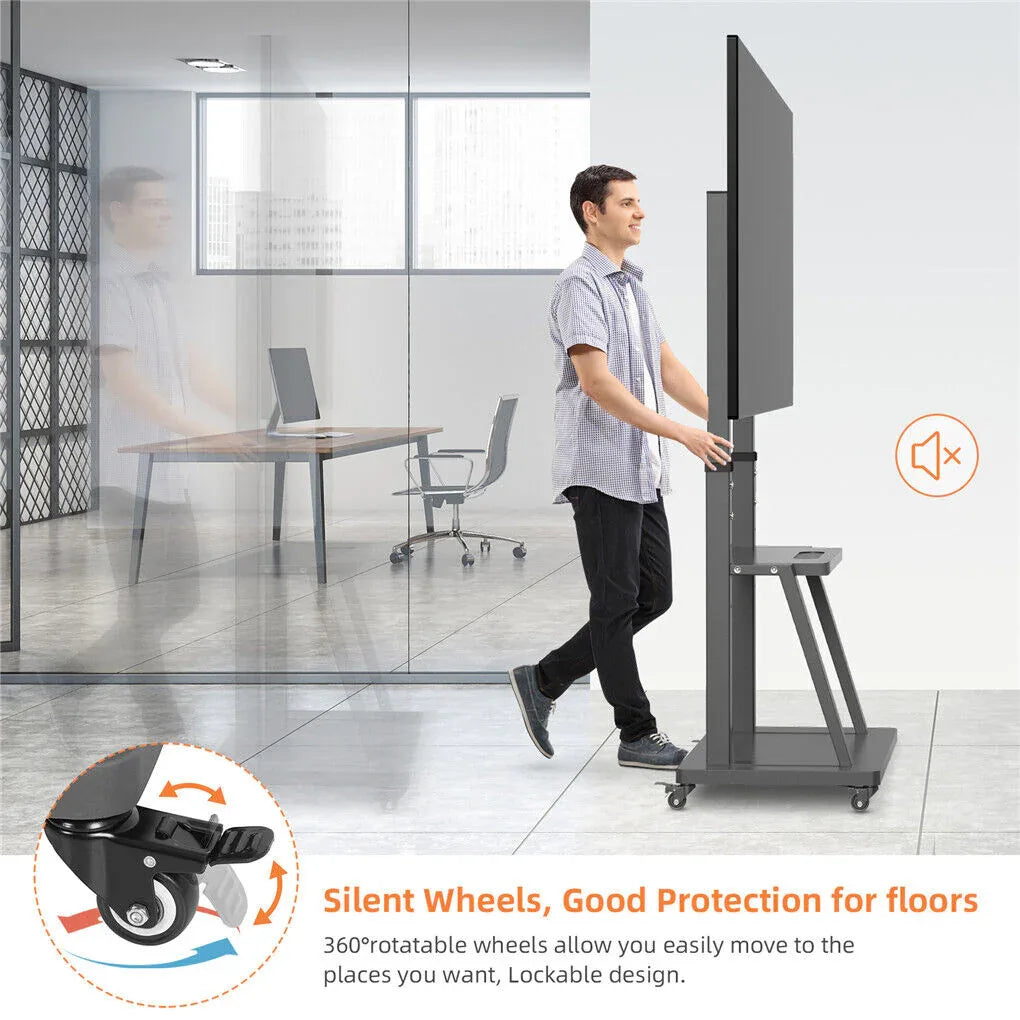 - Adjustable & Convenient: Easily adjust the height of the TV cart between 130cm and 160cm to suit various viewing preferences. The dual shelf design provides ample space for storing computers, DVD players, and other AV equipment, keeping everything you need at your fingertips.