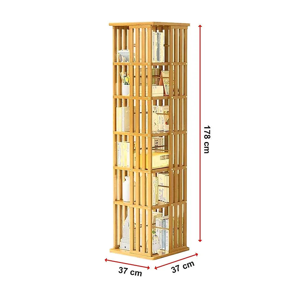 360 Rotating Bookshelf Bamboo Storage Display Rack Shelving in Wood