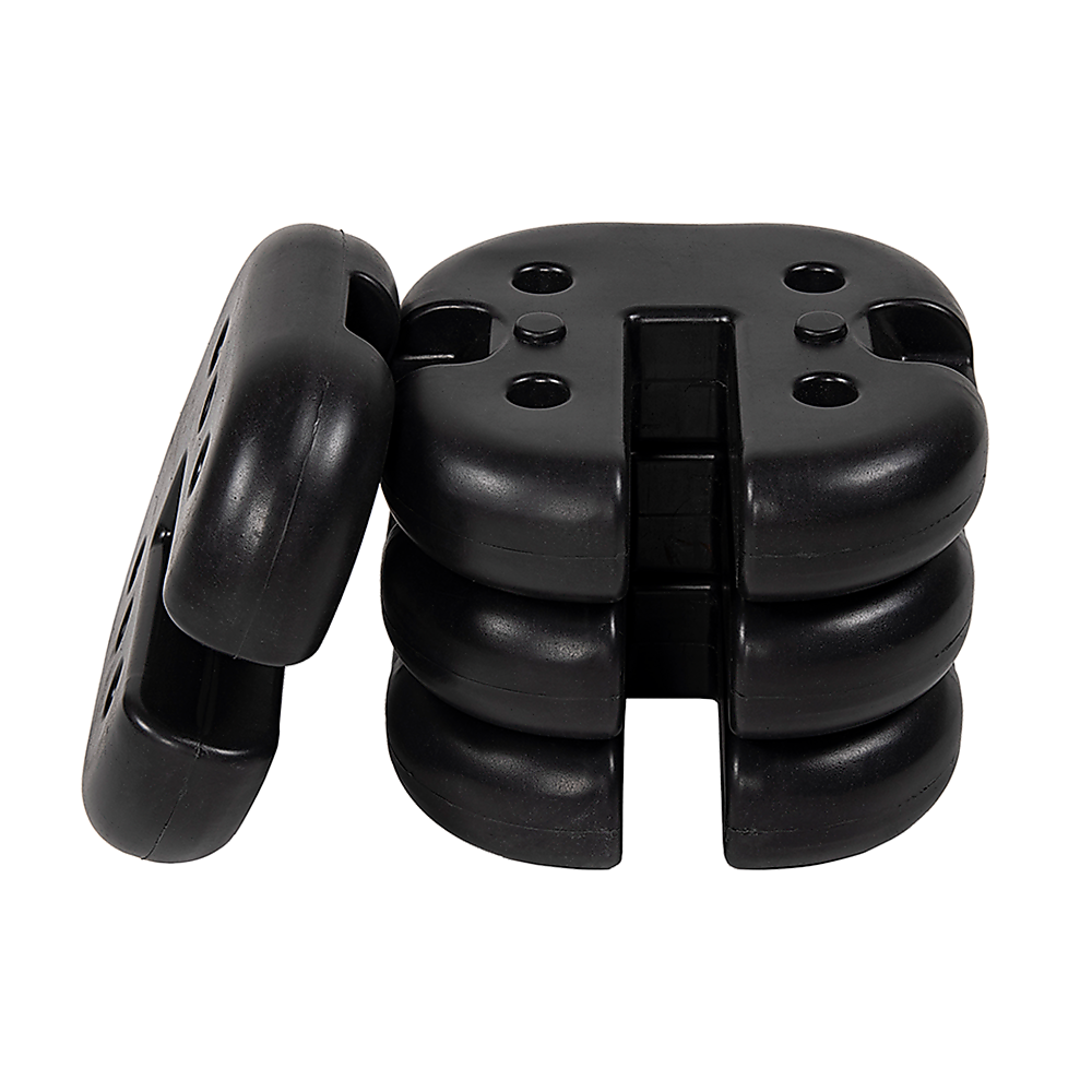 With their heavy-duty construction, these weights should last for years to come. Done in neutral black, they'll look great no matter what colour your canopy or tent is. Thanks to their waterproof rubber coating, they'll hold up well even during the rainy season. And, that coating also cushions your tent or canopy's frame from scratches and dents. Even better, these tent leg weights work with all kinds of frames and on practically any surface. They're easy to grip and easy to install. Don't wait for summer to arrive to have everything ready for outdoor living. Order yours today.