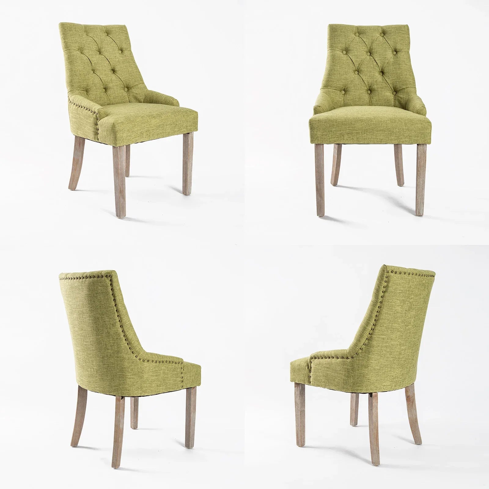 La Bella 4 Set French Provincial Dining Chair Amour Oak Fabric Studs Retro - Green