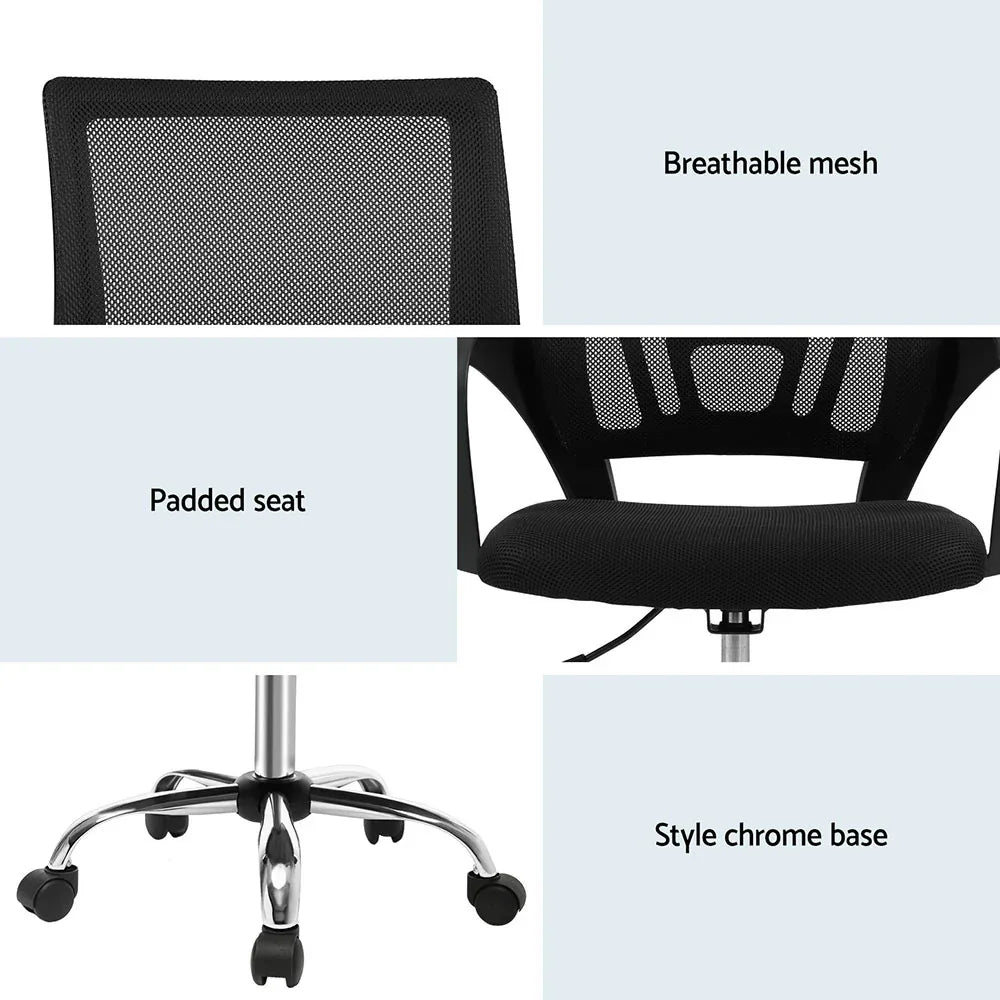 When you're working hard and playing hard, the last thing you need is a hard chair. Our Artiss Mesh Office Chair takes work and relaxation seriously, giving you a premium chair that does more than just give you a comfortable seat. The highly breathable mesh means that you are never hot and bothered during long seating sessions as the chair is always well ventilated. Not only that, but its built-in lumbar support conforms to your back to help fix your posture and ease back pain. The thick padded seat ensures that you are always seated comfortably. You can easily set the chair height with the gas lift to suit your favourite position – no more slouching over the desktop. The chair can also be rotated 360° to face any direction, while the sturdy chrome base features omni-directional wheels for smooth movement. Whatever the occasion – work, gaming, or relaxation – the Mesh Office Chair will be there to support you.