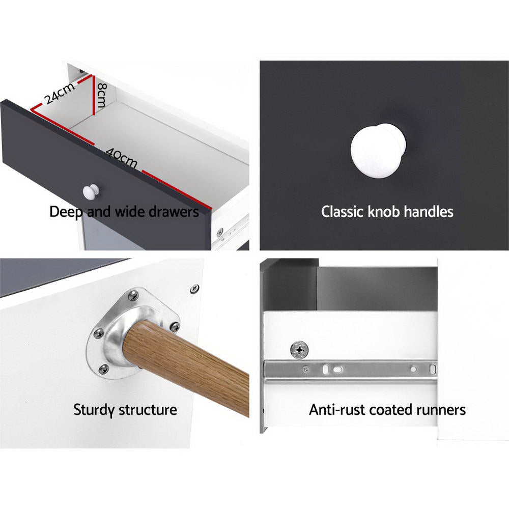 A design that is Scandinavian-inspired and while still reminiscent of decades-old influences, our Artiss 5-drawer Tallboy offers full functionality with subtle style. Made from quality particle board and a smooth paper veneer finish, the two-tone tallboy adds chic appeal to your d��cor and is the perfect choice to grace a dressing room, bedroom, living room or any other space in your home or establishment. The five generous-sized drawers provide ample space for all your clothing, fashion accessories, personal essentials and more. The splayed legs offer a unique, reliable stance, while the classic knob handles and smooth anti-rust metal drawer slides offer smooth, hassle-free use every time. Not sure this piece will suit your home? Take advantage of the latest 3D augmented reality technology to see it first hand �C just scan the QR code on our website and decide for yourself!