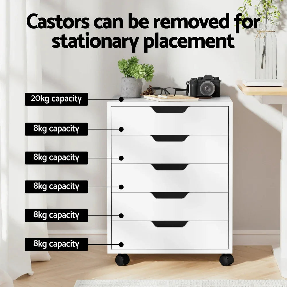 Artiss 5-Drawer Filing Cabinet Mobile Rolling Storage Cabinet Chest of Drawers Stand White