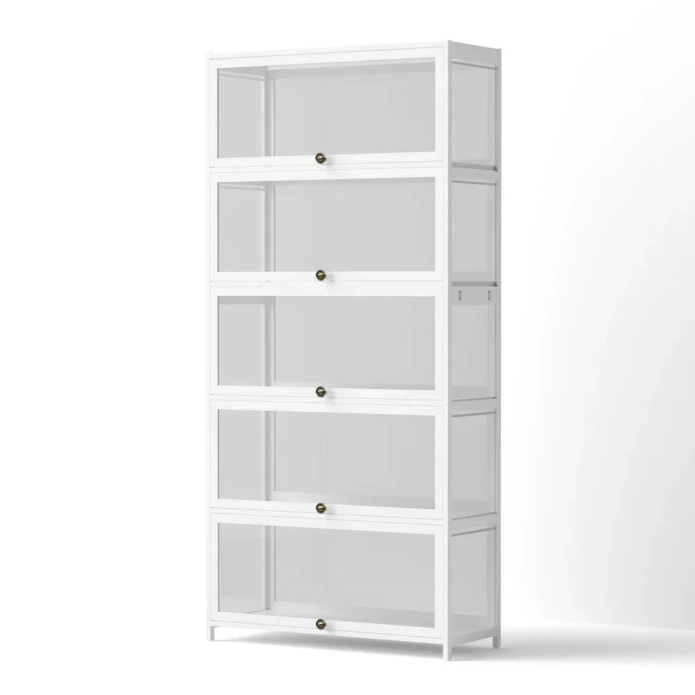 Artiss 5-Tier Display Cabinet Storage Bookshelf Clear Shelf White