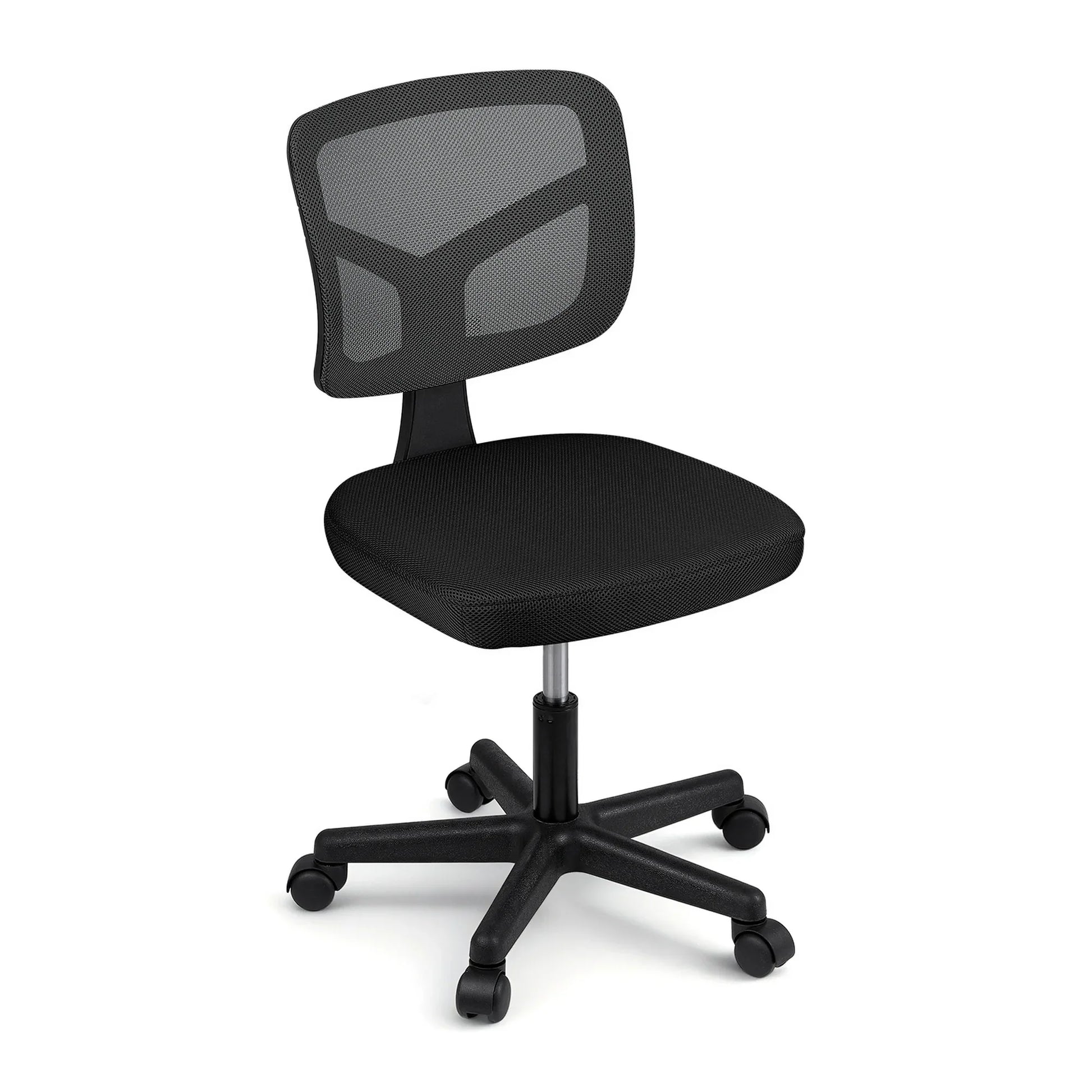 Artiss Armless Office Chair with Wheels, Ergonomic 360° Swivel Home Office Desk Chair, Height Adjustable Computer Task Chair with Fabric Back and Seat for Small Space, Black