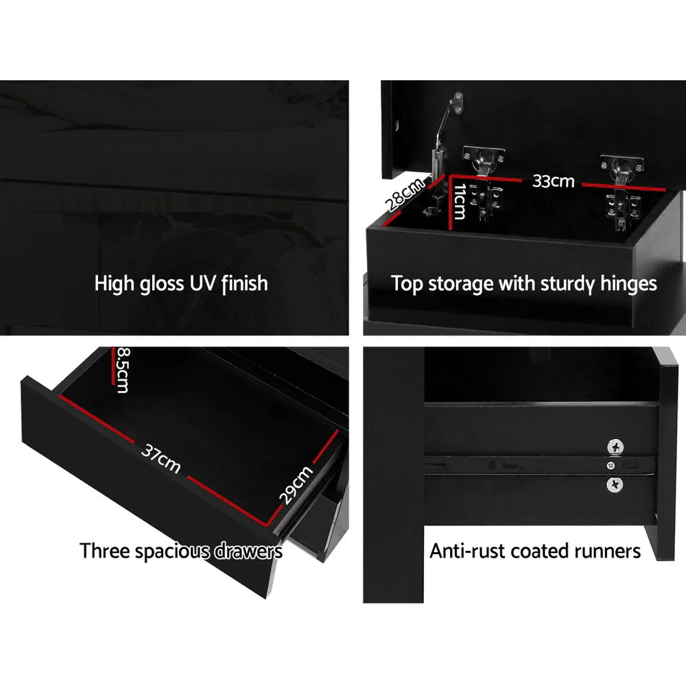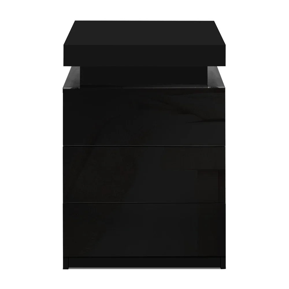 Artiss Bedside Table LED 3 Drawers - COLEY Black