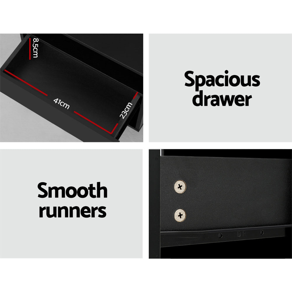 Artiss Bedside Table LED with 2 Shelves - HANA Black