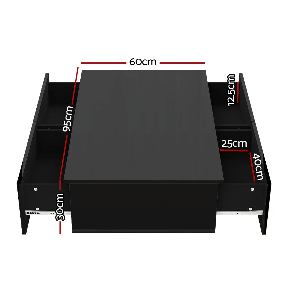 Keep all your books, magazines, remote controls and other entertainment paraphernalia from cluttering up your living room with our Artiss Coffee Table. Four drawers, with two on each side, provide flexibility and ample storage space for all your necessities. The longer drawer boards and anti-rust runners also allow for a smooth and hassle-free operation at all times. The table is not only practical but also stylish with a handle-less design to maintain a sleek appearance. The contemporary and linear design means that the table will be the perfect addition to your modern living room. Or any other room, for that matter. Made of quality particle board, the table is built to last. And the UV high-gloss finish not only makes the table attractive, but also easy to clean.
