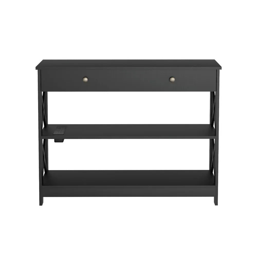 This Artiss console table features an MDF frame with a painting finish, a spacious drawer, sleek metal handles, and high-quality metal runners. Its stable X-shaped design includes a wall attachment. Easy to clean, maintain, and assemble.