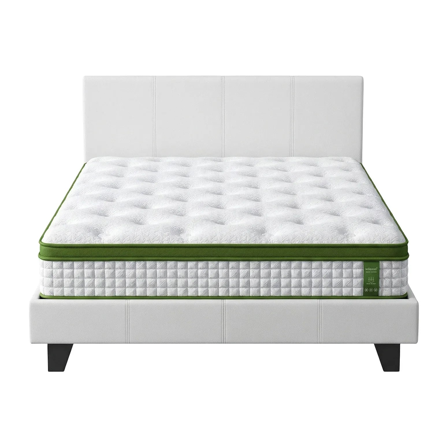 Artiss Double Bed Frame Platform White PVC Leather Hybrid Mattress Modern
