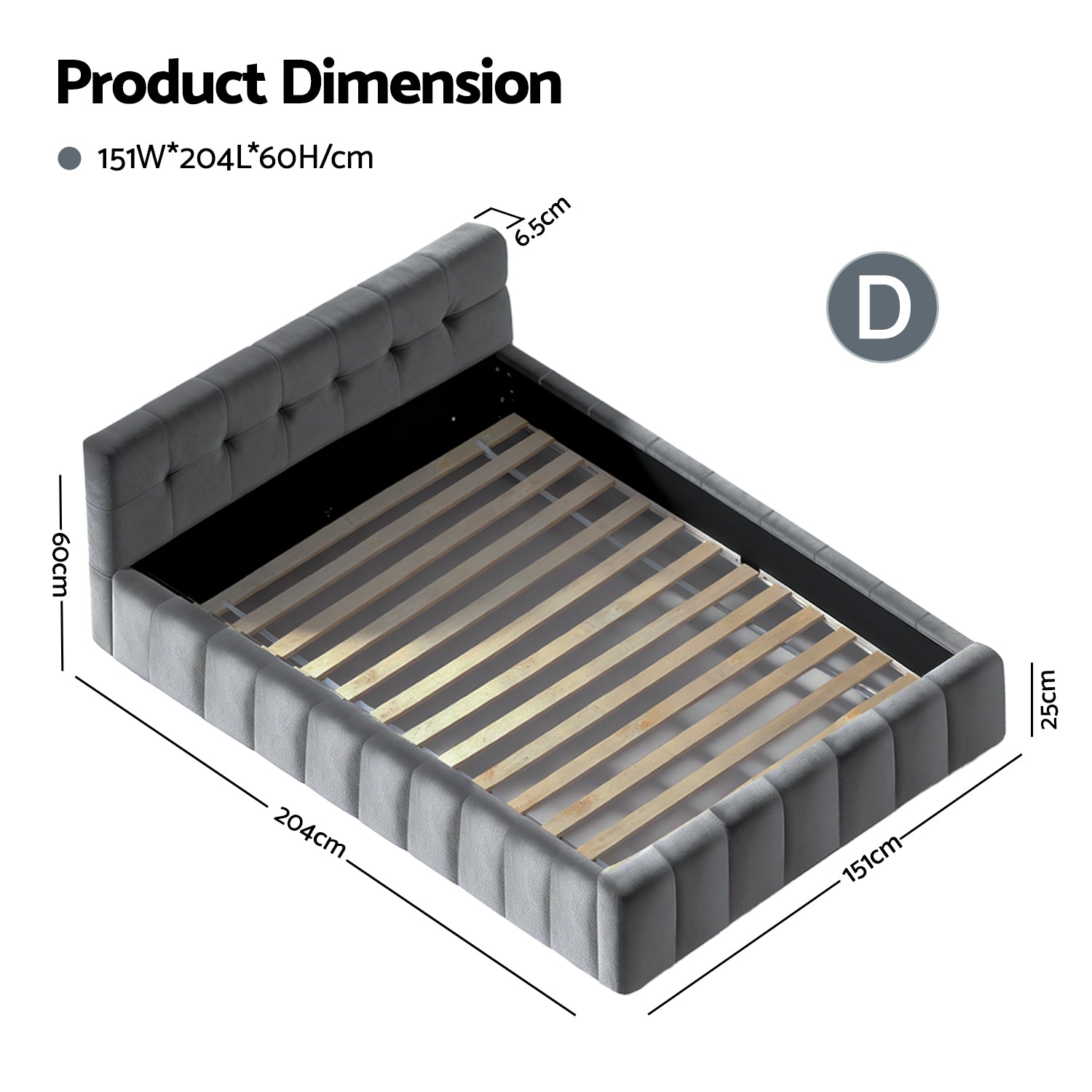 Artiss Double Size Bed Frame Plush Soft Headboard Velvet Platform Base for Modern Bedrooms Grey