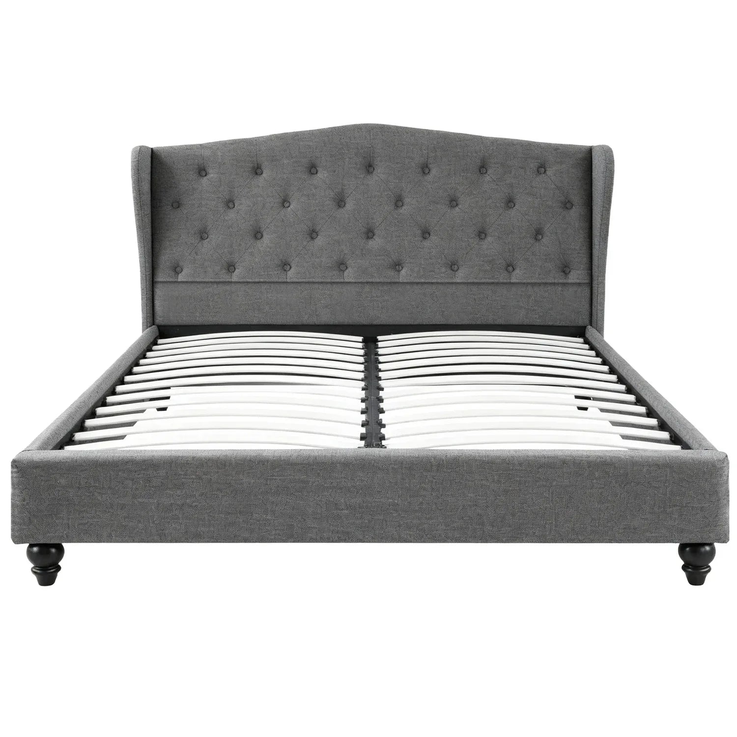 Artiss Queen Bed Frame with Wingback Headboard Grey Linen Upholstered Platform Bed Base