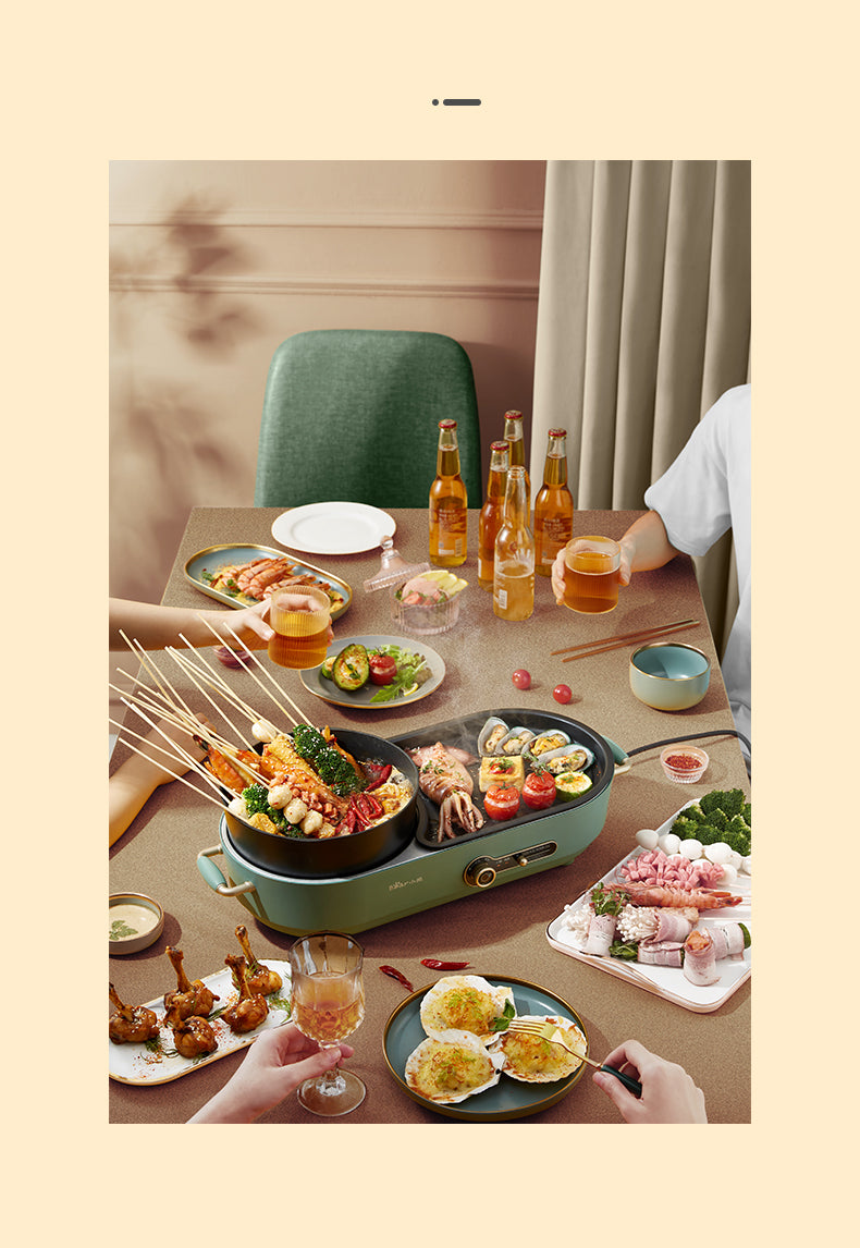 BEAR Multi-functional 2-in-1 Cooking Hot Pot And Griddle Barbecue Machine DKL-C15L1