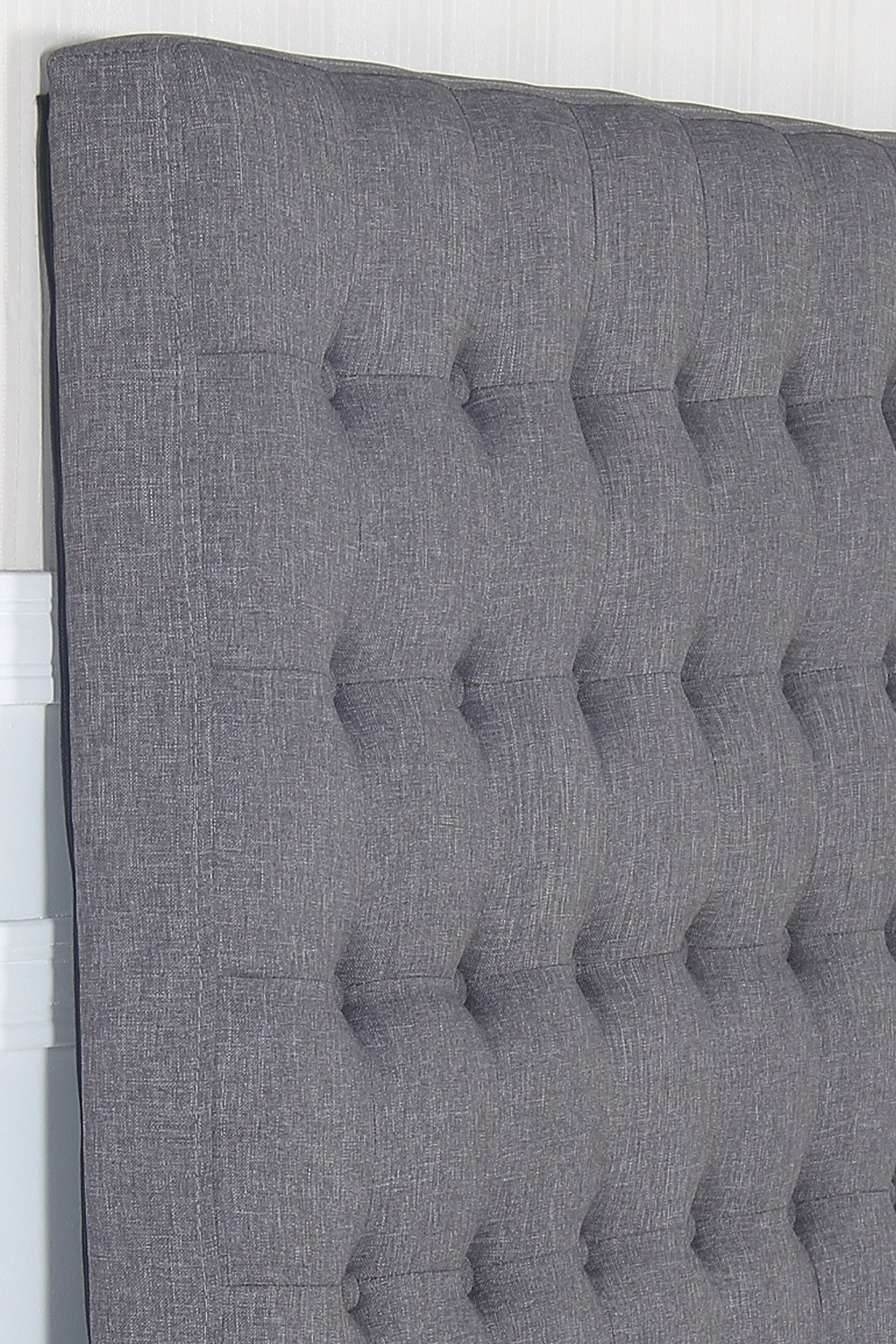 Bed Head King Charcoal Headboard Upholstery Fabric Tufted Buttons