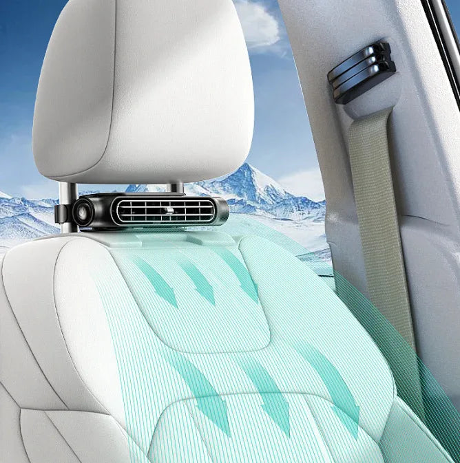 Enhance the comfort of your car's rear passengers, especially during hot days, with our innovative Car Seat Headrest Fan. This sleek, bladeless fan easily attaches to the back of your car's headrest, providing a refreshing breeze to those in the back seat. Powered by USB, it offers three adjustable fan speeds and utilizes turbine technology for concentrated airflow, ensuring a cool and pleasant journey for everyone.