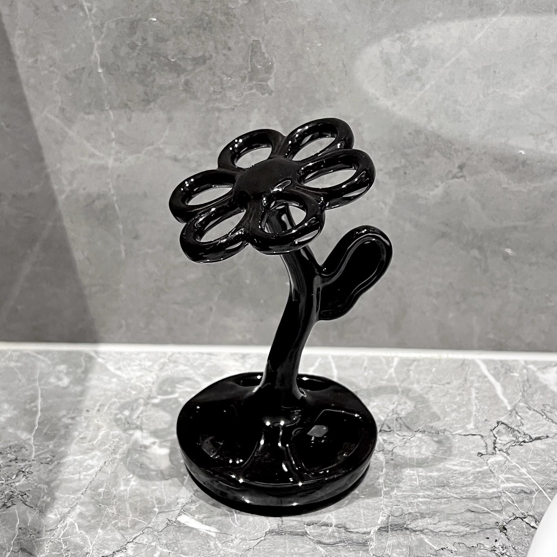 Black Creative Ceramic Toothbrush Holder - Makeup Brush & Eyebrow Pencil Organizer for Bathroom, Stylish and Practical Toothbrush Stand