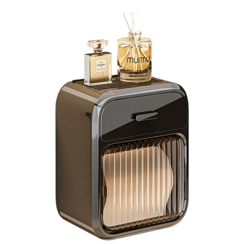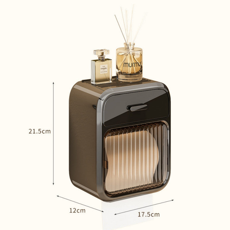 Transform your bathroom organization with our stylish, waterproof, and multi-purpose wall-mounted tissue holder. This sleek dispenser seamlessly combines a toilet paper box, a spacious storage shelf, and a private drawer, maximizing space and keeping your essentials dry and organized.