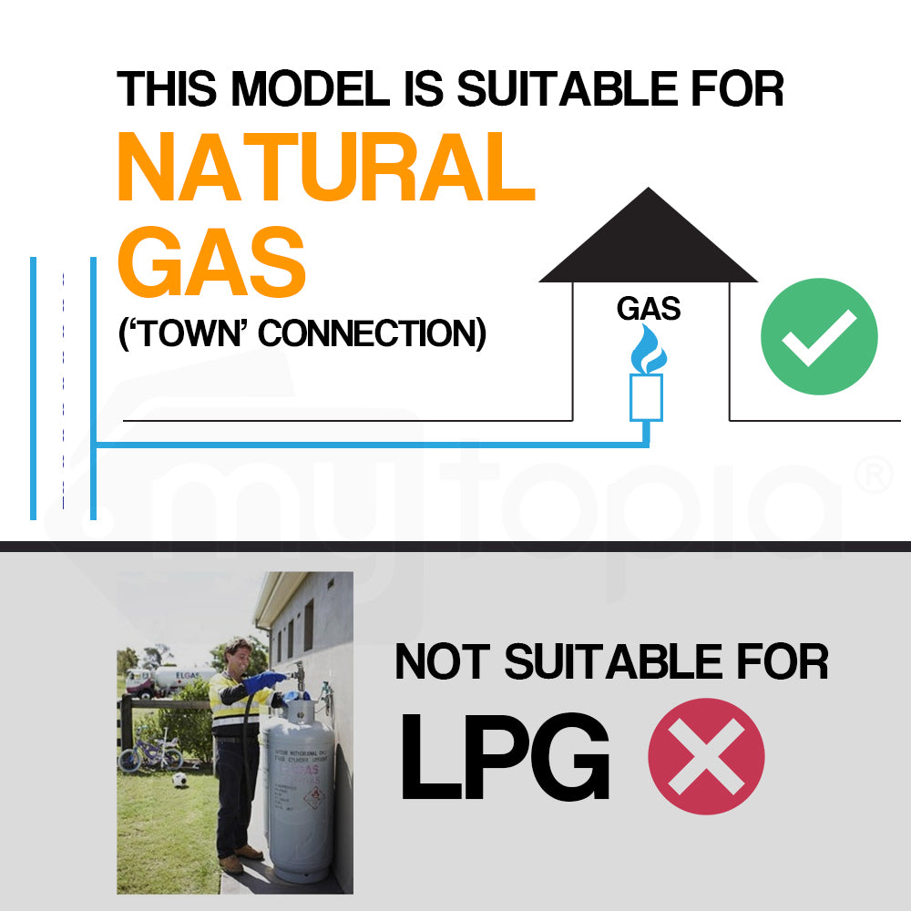 - NOTE: THIS MODEL IS ONLY SUITABLE FOR USE WITH A NATURAL GAS 'TOWN' CONNECTION