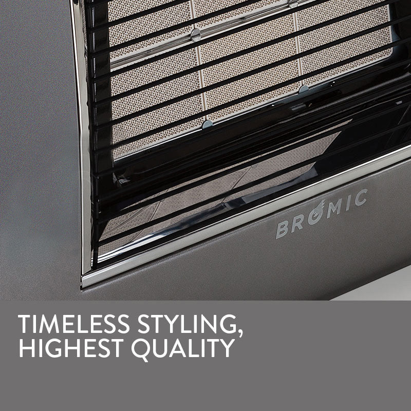 The Bromic Supaheat II Gas Indoor Room Heater is sure to integrate seamlessly with your living space, with its stylish, timeless design and the elegant, easy-clean metallic finish. The Supaheat II is also easy-to-use with electronic battery ignition and high and low heat settings.