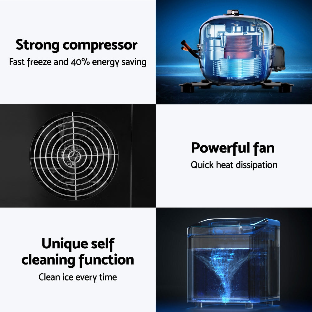 Devanti Ice Maker Machine Portable 12kg Countertop w/Self Cleaning 1.2L Black