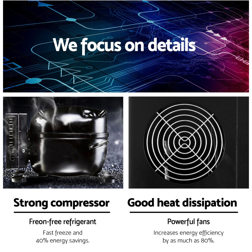 Need ice cubes on demand fast and without the hassle of driving to the nearest servo or supermarket to get some? Well your wish has just come true with the Devanti Ice Cube Maker. Capable of making 9 ice cubes in every 6 minutes depending on the water and ambient temperatures, the portable ice cube maker can also do three different sizes of its crystalline bullet-shaped ice cubes. That works out to about 15kg on demand over a 24-hr period. Just select your size option on the LED control panel, set the time and press start. You can easily monitor the water level or when the ice cube container is full and there is an automatic indication when the water level is low. Other great features include a large heat dissipation fan for excellent cooling, a 19.5-hour timer setting, convenient water drainage plug and non-slip feet for a stable operation. Not least, the ensemble works ever so quietly and complies with current Australian standards.