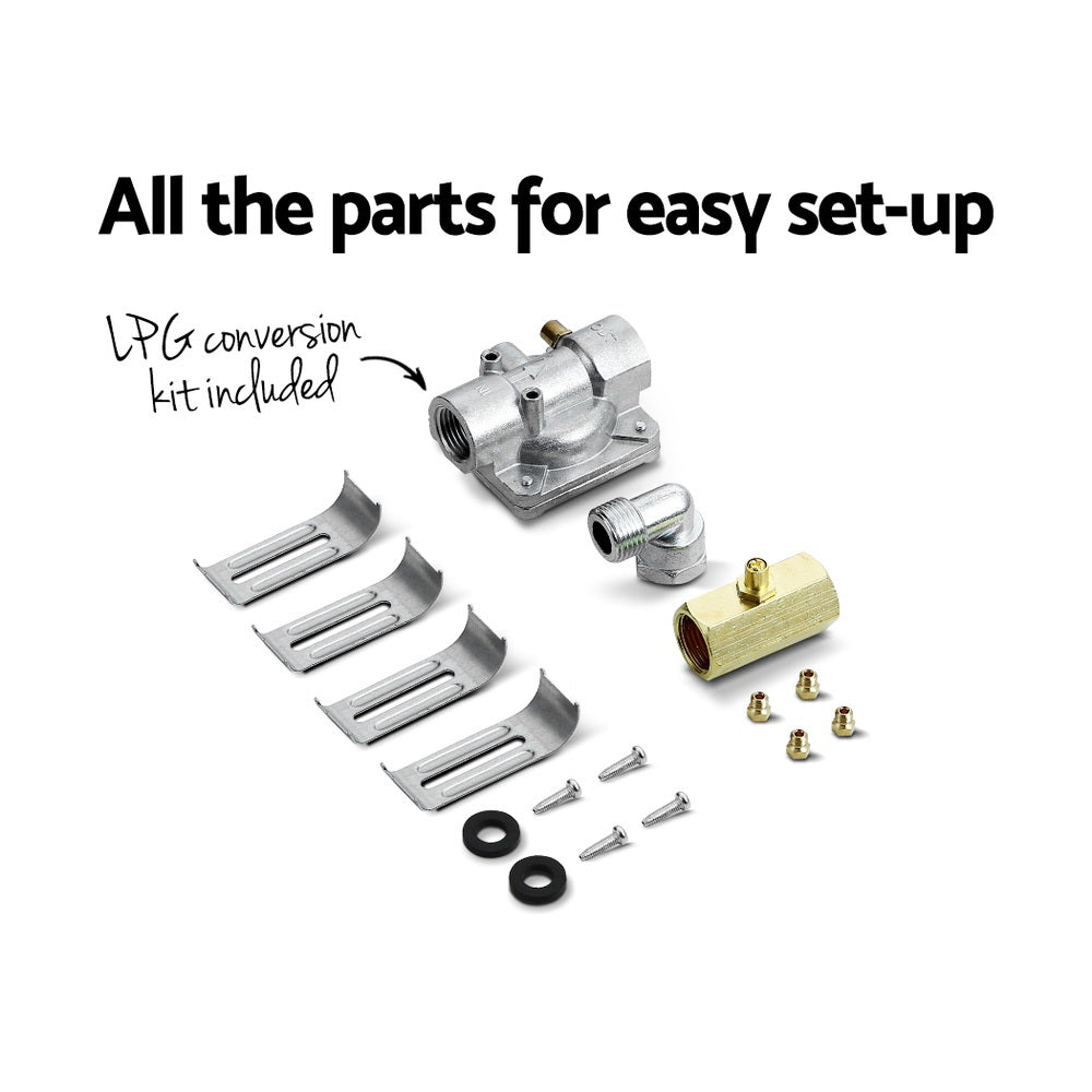 Whether it is for your existing or new home, our Devanti 60cm Gas Cooktop is just the right thing you need for easy, no-fuss cooking. Loaded with an extensive list of chef-friendly features such as an easy ignition system, easy-to-use galvanized knob controls with safety lock and a flame failure safety device, the cooktop is also incredibly sleek with its black tempered glass surface. It features four burners including two semi-rapid burners, one wok burner and one auxiliary burner, all with various power levels to choose from to prepare that perfect dish. The solid cast iron grates hold up your pots and pans perfectly steady and are longlasting and heat-resistant as well. The cooktop is factory set for natural gas but is compatible with LPG once the included LPG conversion kit is installed. Powerful and yet integrally safe, the cooktop promises many moments of hassle-free delicious cooking with the right blend of sophistication and class for your kitchen.