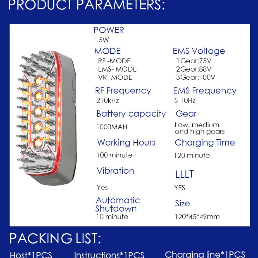 Charge the device using the provided USB cable. Clean the comb with a soft, dry cloth after use. Store in a cool, dry place to maintain performance.