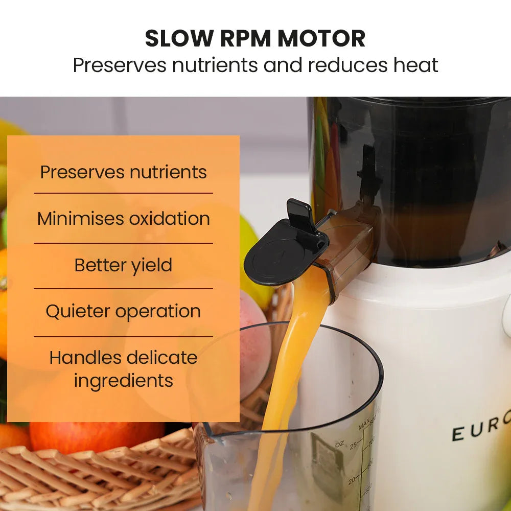 EUROCHEF Cold Press Slow Juicer Machine, Large Chute, 200W, White