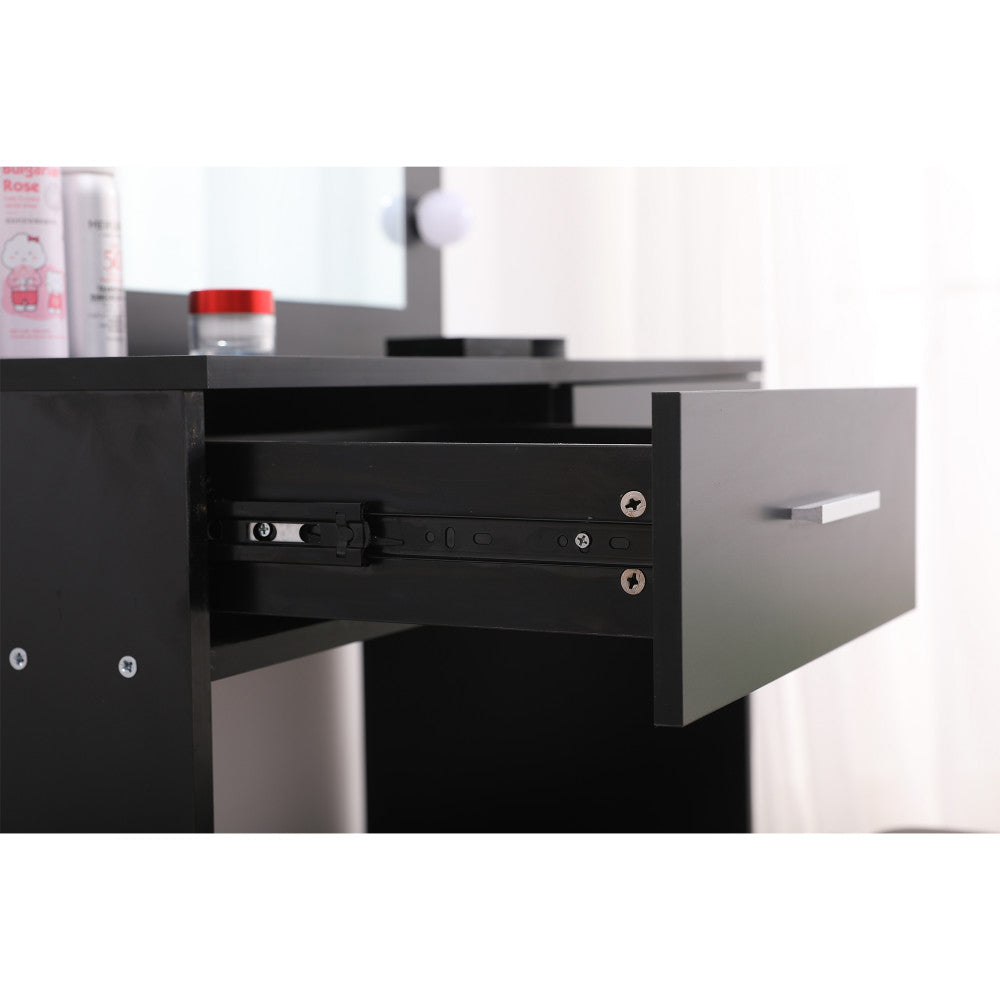 Fidel Vanity Set with Cushioned Stool and Lighted Mirror- Black