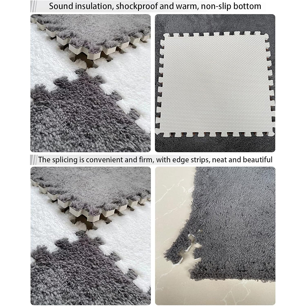 Foam Floor Mats Set 10PCS Shaggy Interlocking Tiles Soft for Kids Room Play Area - Grey-White
