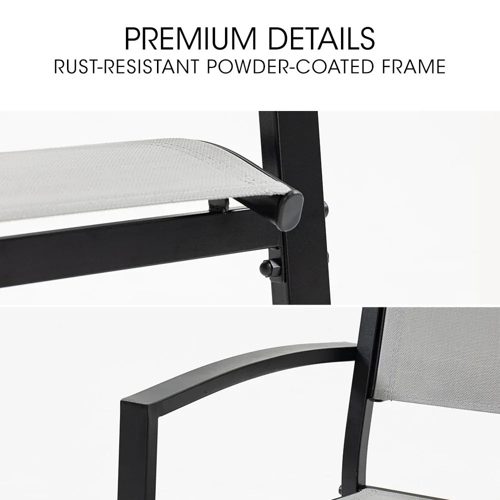 Designed for all climates, the set features breathable mesh fabric on the chairs and a premium polywood tabletop, ensuring durability and fade resistance, with no upkeep required.