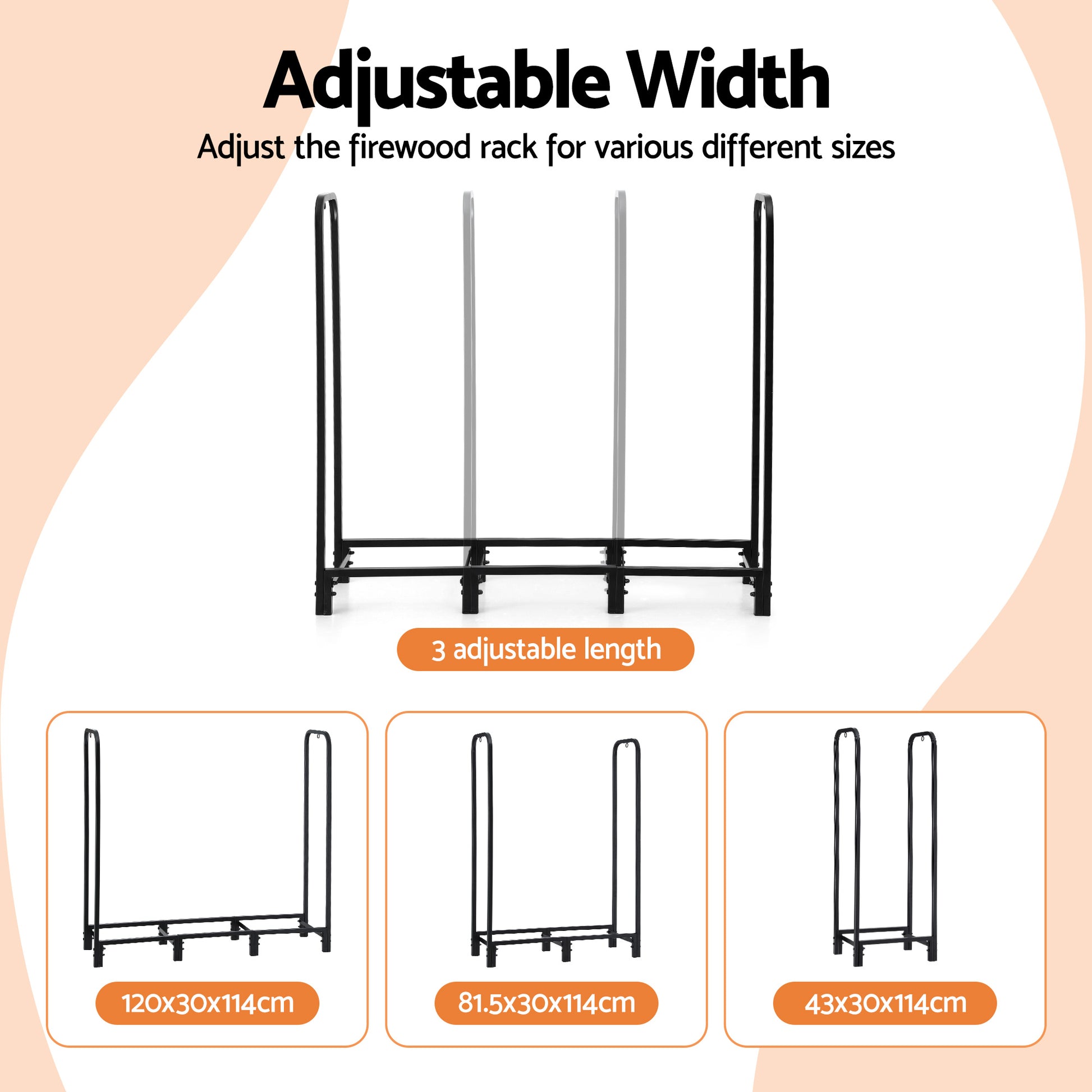 The Gardeon Firewood Rack offers versatile sizing (43/82/120cm) for different storage needs. Its powder-coated steel frame keeps logs elevated and dry, while included tools (poker, brush, tongs, shovel) simplify fireplace maintenance. The ventilated design promotes airflow for faster drying. Ideal for patios, cabins or garages.