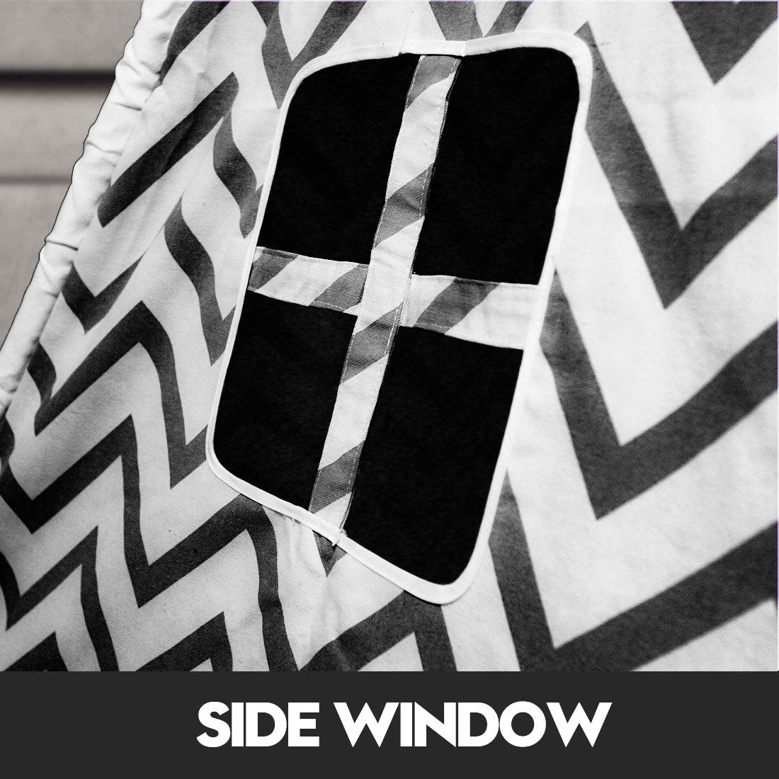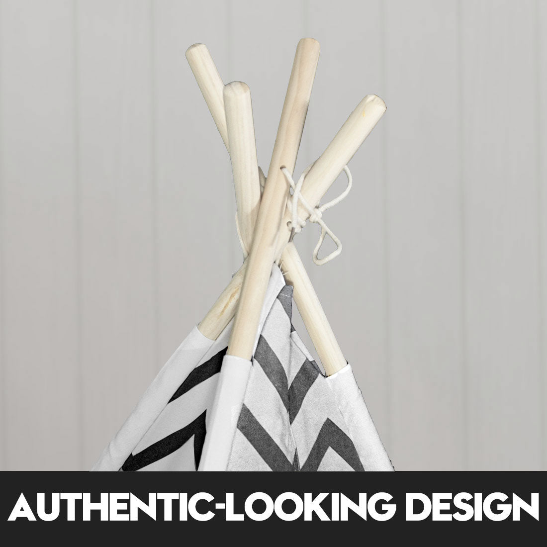 Entertaining the children will be easy with this realistic teepee. Ideal for creating magical places, elaborate games and inspiring physical activity. Suitable for both inside the house or outside in the garden, the adorable patterns and vibrant colours will make it a sure-fire hit at playtime. This teepee is finished in smooth wooden poles and covered in durable, cotton canvas. There is even a side window so you can keep an eye on what's happening from the outside, tie-down doors and a matching floor mat. Lovely to look at and lovely to think your children be entertained for hours!
