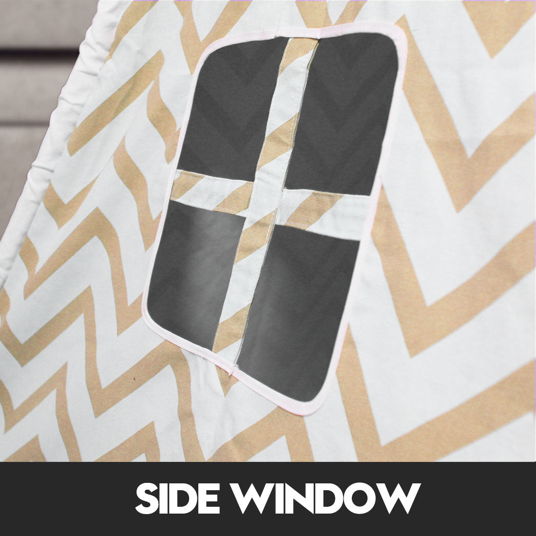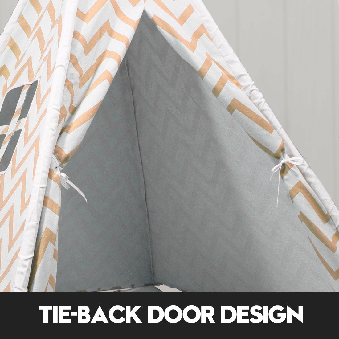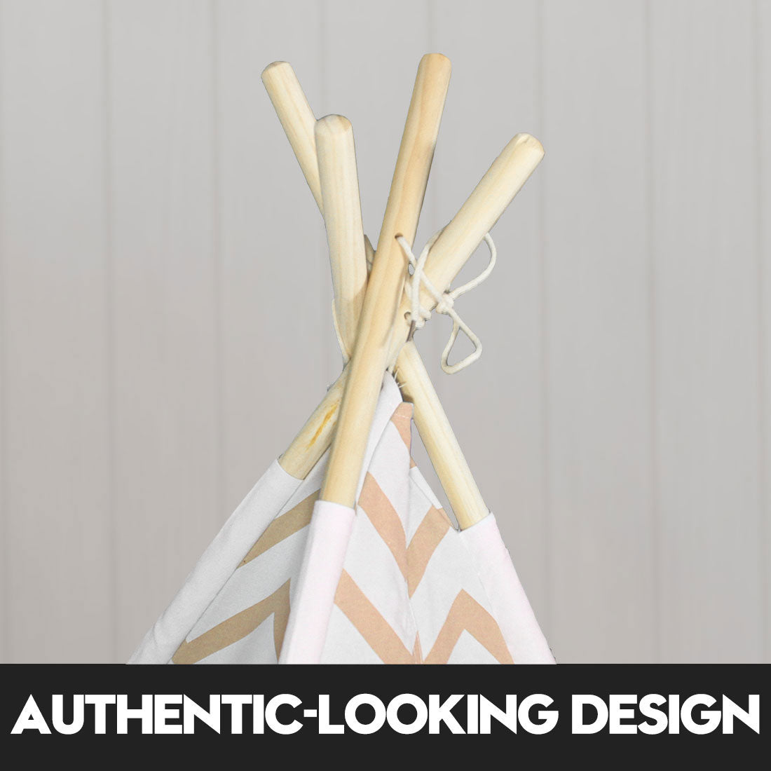 Entertaining the children will be easy with this realistic teepee. Ideal for creating magical places, elaborate games and inspiring physical activity. Suitable for both inside the house or outside in the garden, the adorable patterns and vibrant colours will make it a sure-fire hit at playtime. This teepee is finished in smooth wooden poles and covered in durable, cotton canvas. There is even a side window so you can keep an eye on what's happening from the outside, tie-down doors and a matching floor mat. Lovely to look at and lovely to think your children be entertained for hours!