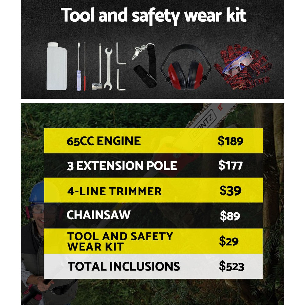 Giantz 65CC Pole Chainsaw Hedge Trimmer 12in Chain Saw 4.3m Long Reach