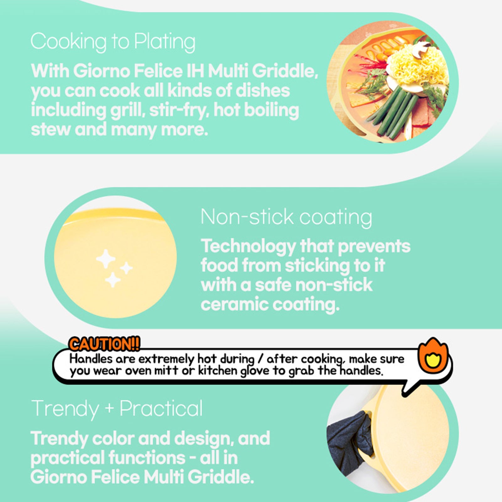 Giorno Felice IH Griddle Pan 34cm Ceramic Non-Stick Camping Korean Stew Round