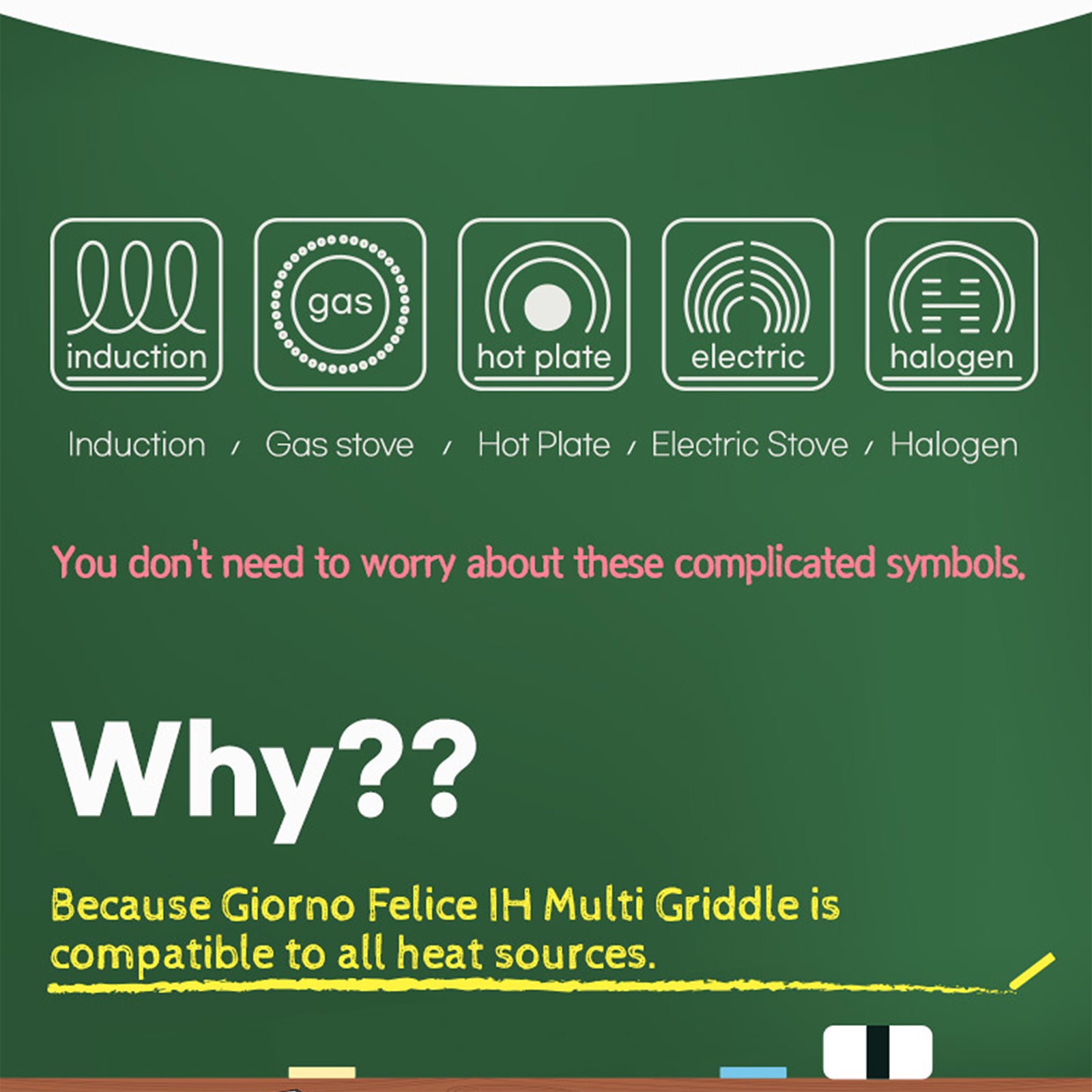 - Available for most heat sources: gas, halogen, ceramic glass