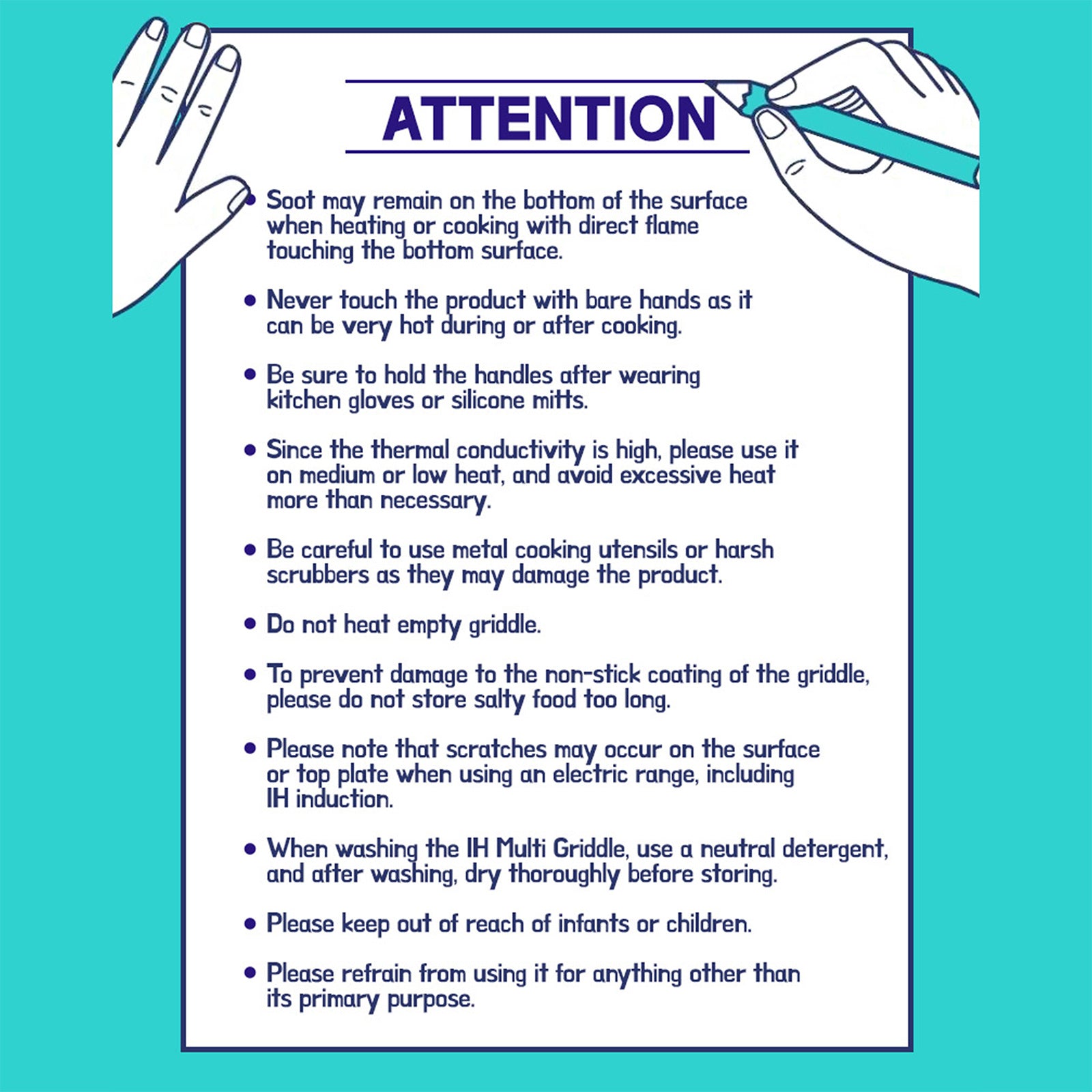 Please be cautious; the handles can get extremely hot during cooking, so consider using kitchen gloves for protection. For further usage instructions, please refer to the listing photo.
