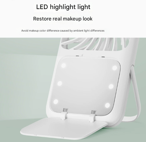 - 2-in-1 design: handheld fan with built-in LED makeup mirror