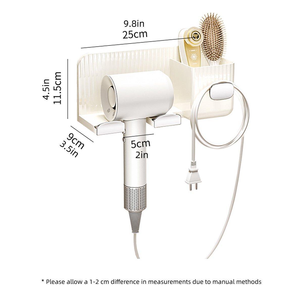 Multi-Function Storage: Holds a hair dryer, includes a compartment for brushes or accessories, and a hook for cords.
