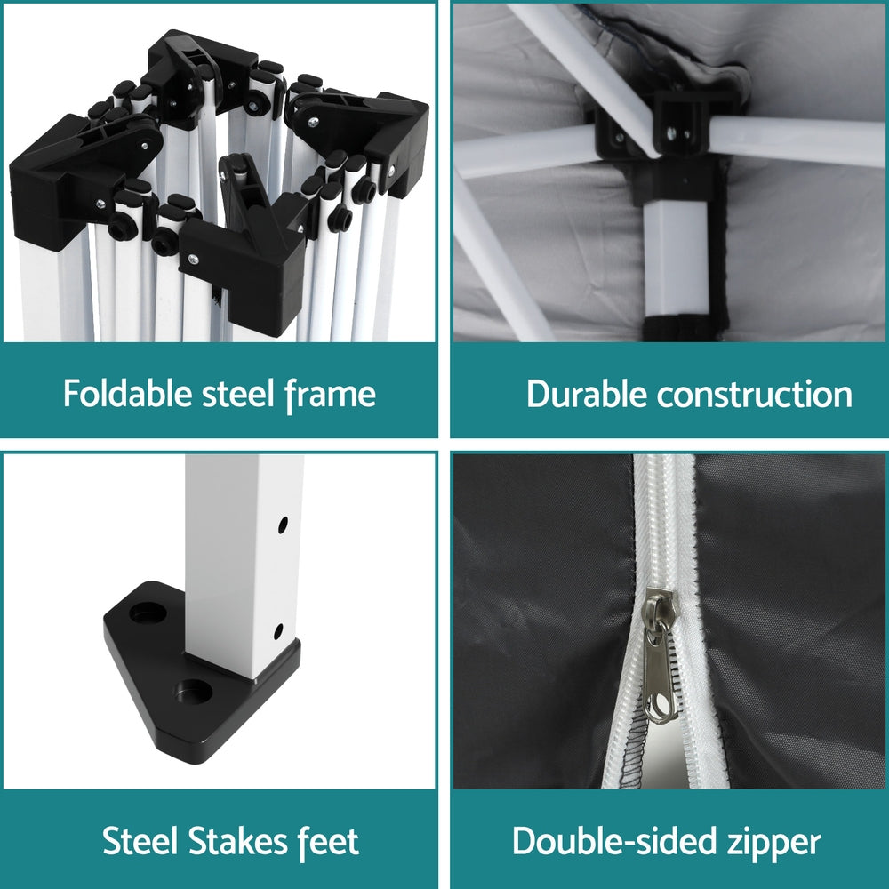 Instahut Gazebo 3x3 Pop Up Marquee Folding Tent Wedding Gazebos Camping Outdoor Shade Canopy Gray