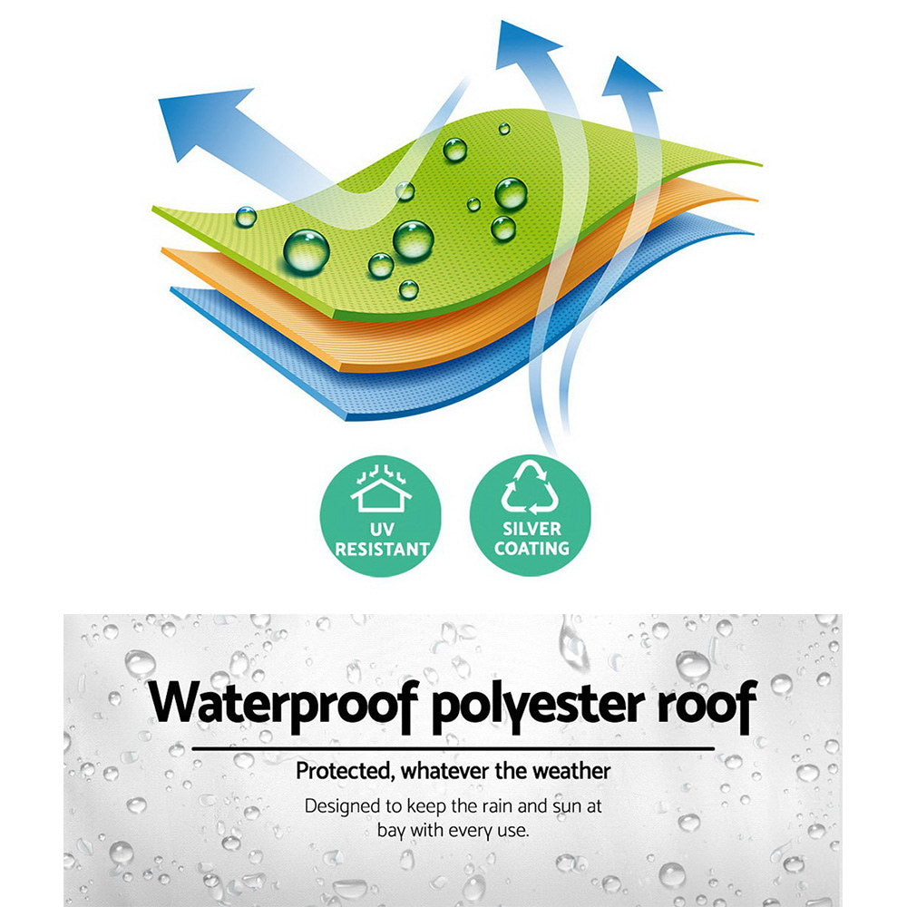 In your garden, at an outdoor BBQ or sports event, on your travelling vacation or on market days, our INSTAHUT Pop-up Gazebo is your ideal solution for instant cover outdoors. With a wide roof coverage of 300cm by 300cm, the exceptional cover is made of durable silver coating 210D Oxford fabric that is both UV and water resistant. Height can be easily adjusted with four pre-sets, ranging from 232cm to 250cm. It also features two zipped entrances and insect-proof mesh walls. Plus, the powder-coated steel frame, cross-bar frame work and steel supporting legs mean that this gazebo is no easy pushover from man or weather. The gazebo can be set up in minutes and kept away just as quickly in your car boot, van, trailer, garage or shed. Thanks to its portable design, quick and convenient hook and loop attachments, fast release and fasten rings and handy nylon inserts for hassle-free use.