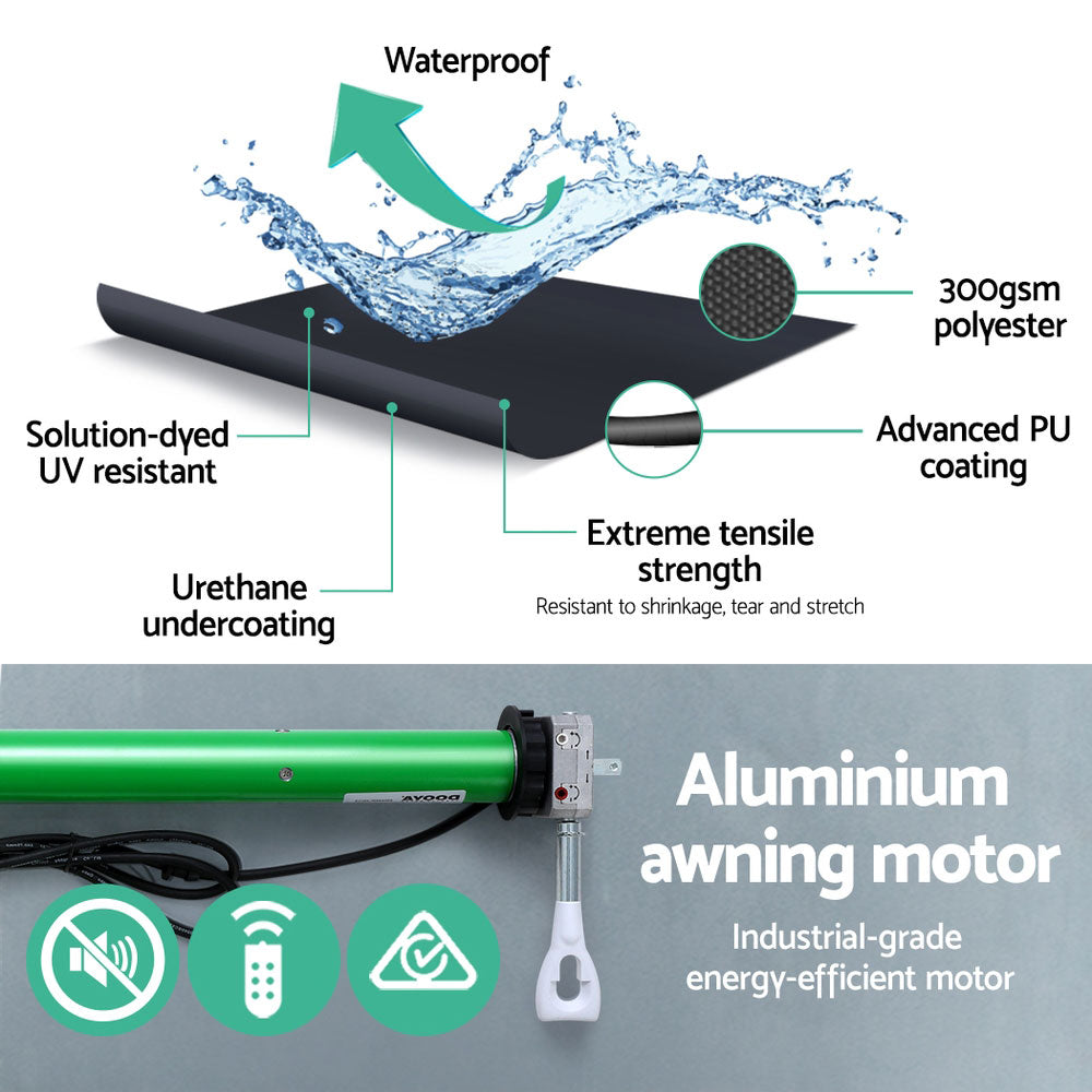 Instahut Retractable Folding Arm Awning Motorised Sunshade 2.5Mx2M Grey