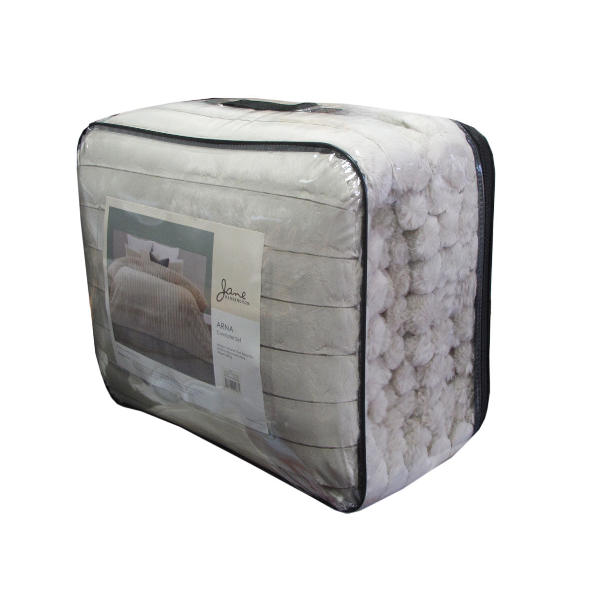 Jane Barrington Arna Natural 3 Pcs Channel Faux Bunny Fur Comforter Set Queen