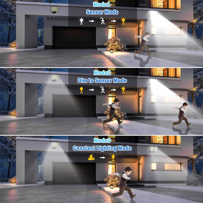 - Remote Control Three Lighting Modes: Easily switch modes by remote control or by pressing the button on the back of the solar outdoor light. There are 3 lighting modes that can be chosen according to your needs with this outdoor solar light, it is strong motion detector mode, intelligent motion sensor mode and dusk to dawn mode.