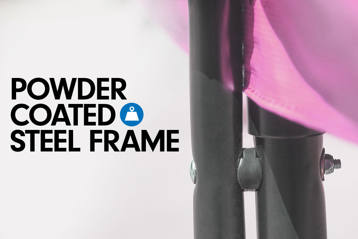 This is a heavy trampoline and uses linked legs for superior stability. The structure of the legs also minimises the tendency for legs to dig into the ground.